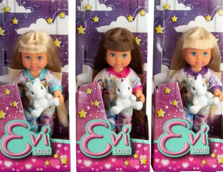 Evi in einem süßen Pyjama mit Einhornkuscheltier, ca.12 cm,