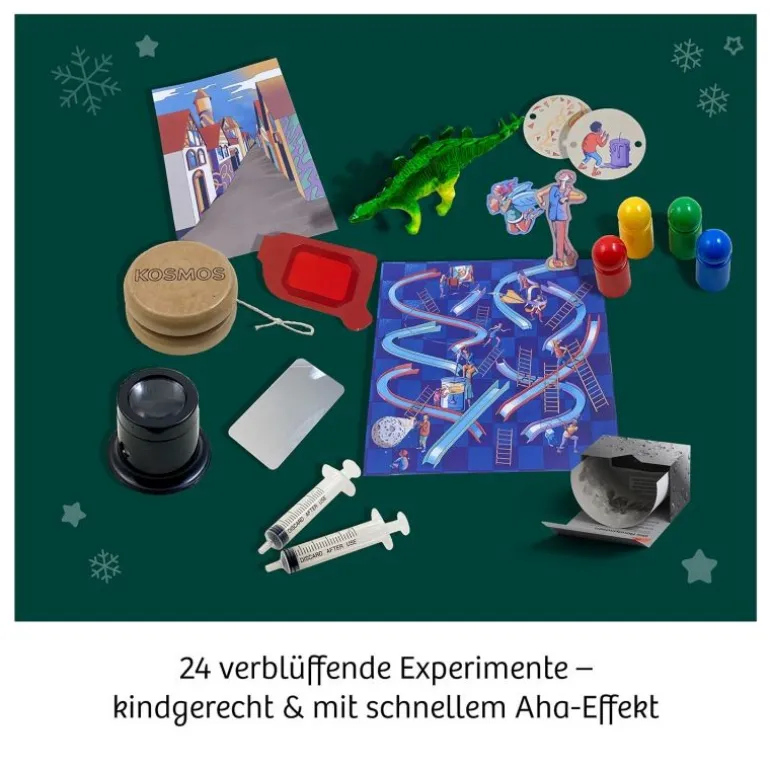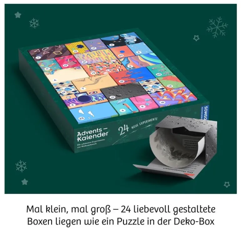 Hier warten neue Durchstarter-Experimente auf neugierige Kinder – der Adventskalender mit Wissenskick für die Weihnachtszeit 2024! Alle 24 Versuche sind innerhalb von wenigen Minuten durchgeführt und damit der perfekte Start in den Tag. Physik, Biologie und Chemie zum Anfassen – da staunt die ganze Familie über Alltags-Phänomene! Einfach jeden Morgen eine der kleinen Schachteln öffnen und verblüffen lassen, wohin sie führt! Haben die Versuche neugierig gemacht? Dann verraten Zusatzinfos noch viel mehr über die spannenden Effekte und liefern tolles Hintergrundwissen.