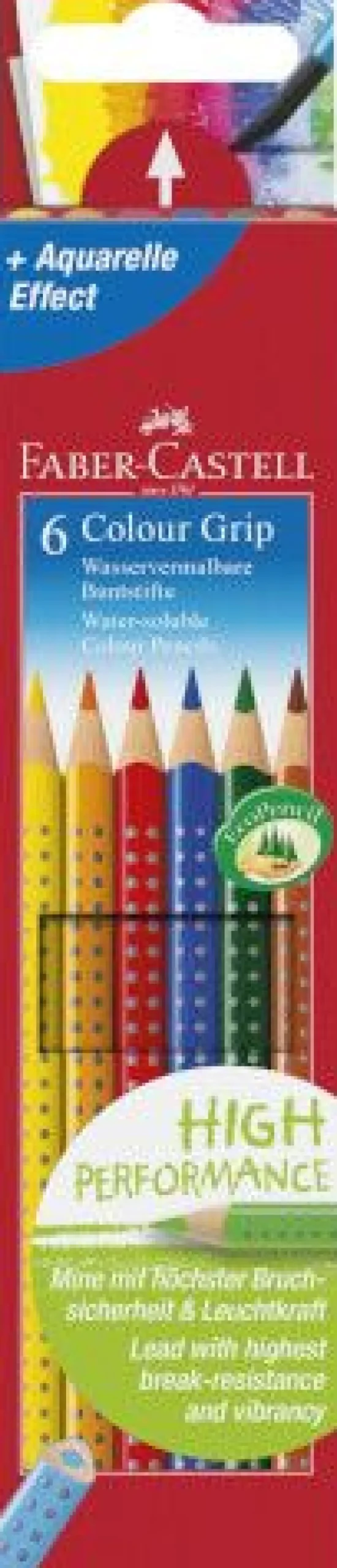 Buntstift Colour GRIP 6er Etui – Für die größeren Kinder: Farbstifte in Standard-Durchmesser mit Anti-Rutsch-Noppen, in 36 leuchtenden Farben und mit wasservermalbarer Mine. Die Colour GRIP 2001 Stifte haben eine Rutschbremse: die patentierte Soft-GRIP-Zone. Sie besteht aus vielen kleinen Noppen aus Wasserlack. Diese sorgen für einen sicheren Griff beim Schreiben und Malen. Alle Farben sind wasservermalbar. Das heißt, sie sind auch zum Aquarellieren ideal. Durch die ergonomische Dreikantform liegt der Stift besonders gut in der Hand. Ein spezielles Verleimungsverfahren schützt die Mine vor dem Abbrechen. Jeder Stift hat ein Namensfeld, damit er nicht verloren geht. Die Farben sind aus den meisten Textilien leicht auswaschbar. Colour GRIP 2001 Farbstifte haben brillante Farben und malen schön weich. Sie sind mit umweltfreundlichen Wasserlack überzogen. Auch die Noppen der Soft-GRIP-Zone bestehen aus Wasserlack. Colour GRIP 2001 Farbstifte sind mit jedem handelsüblichen Qualitätsspitzer leicht anzuspitzen.