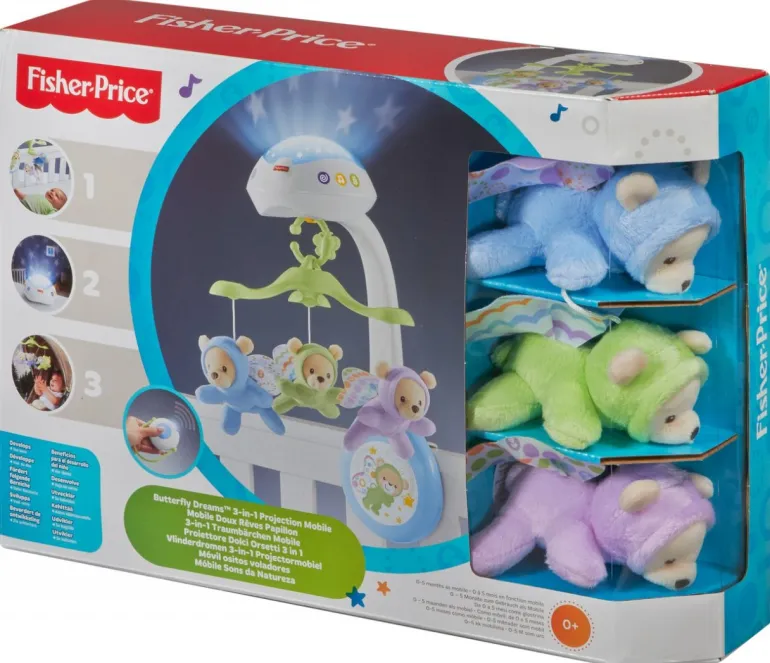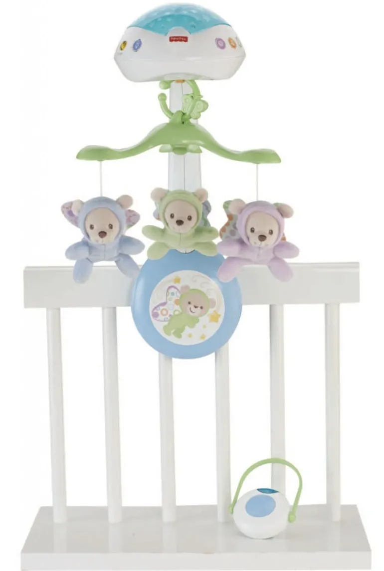 Niedliches Mobile mit beruhigenden Motiven enthält ein Sternenlicht das an Wände und Decke projeziert wird,Musik und Naturgeräusche für wunderschöne Träume.