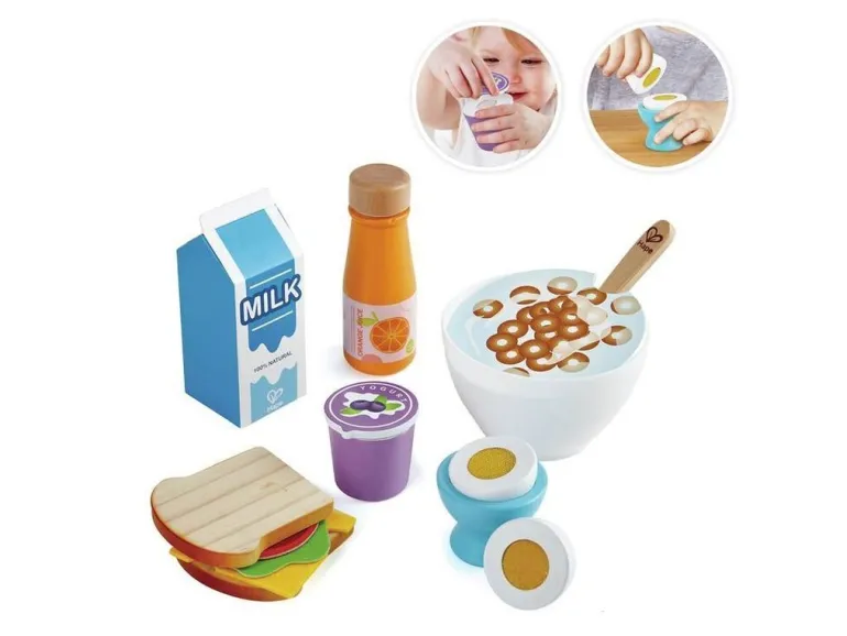 Das Frühstücks-Set enthält einen Joghurt, Milch und Orangensaft. Außerdem können sich Hungrige über Brot und Aufschnitt und andere Leckereien freuen.