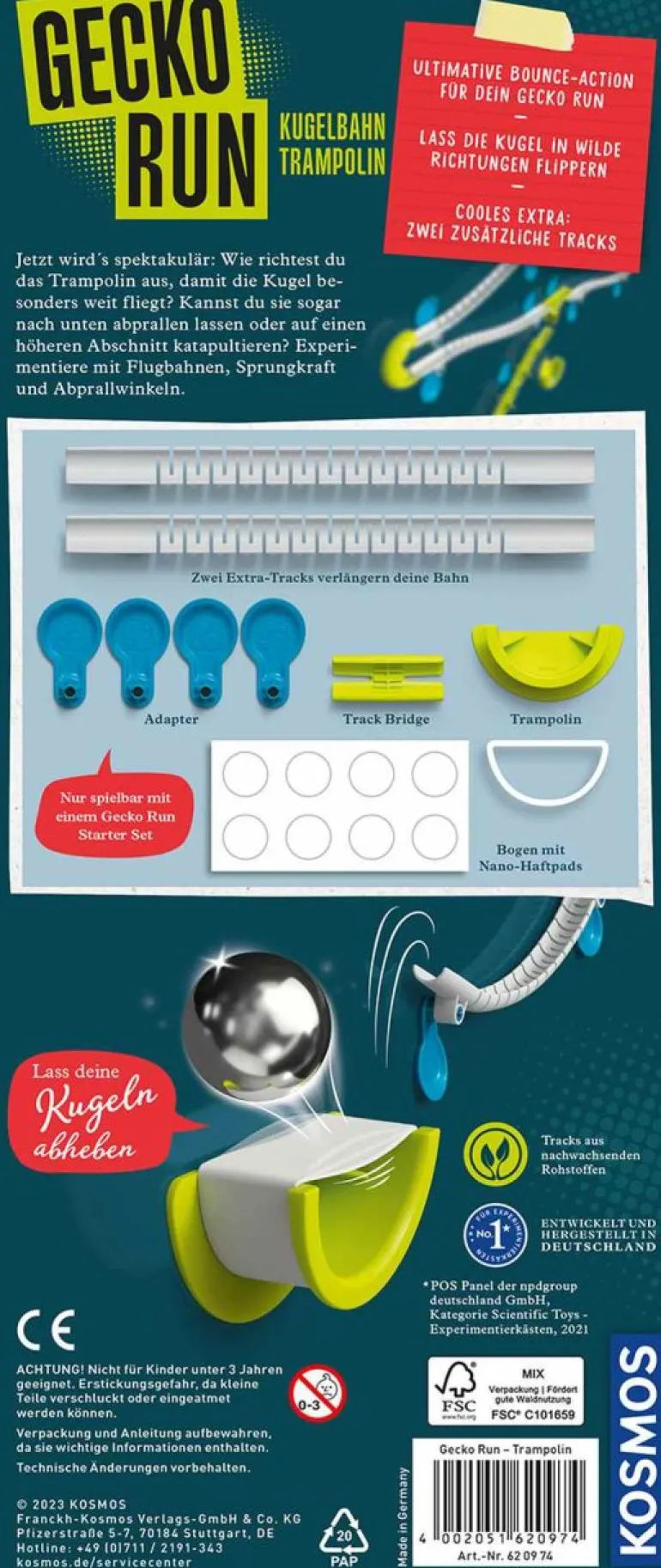 Kann sie sogar zurück auf einen höheren Abschnitt katapultiert werden? Das tolle Extra: Zusätzliche Bahn-Elemente vergrößern die Reichweite der Kugelbahn! Hinweis: nur mit dem Gecko Run „Starter Set spielbar.
