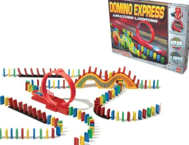 Kugeln rollen, die Domino-Steine fallen und fliegen im wilden Looping umher! Pure Action mit Domino Express. Das Domino Express Amazing Looping Set bietet Spannung Pur mit aufregenden Loopings und Express Steinen, die noch mehr Action in die fallenden Domino Steine bringt.