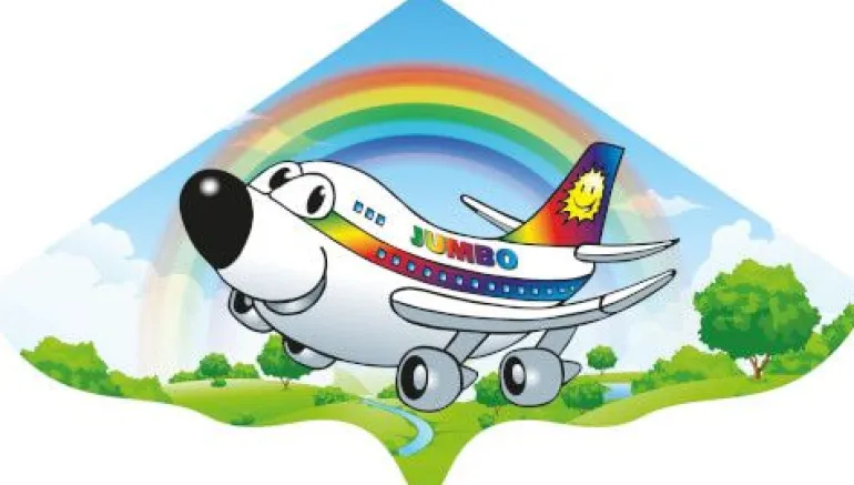 Jumbo Einleinerdrachen aus PE-Folie -Deltaform -geeignet ab 4 Jahren -Größe aufgebaut: 115 x 63 cm -Windstärke: 20-40 Km/h -Schnurl änge: 40 m -Reisfestigkeit: 35 N -Griff