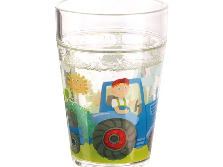 Schöner Glitzerbecher mit Traktor Motiv.