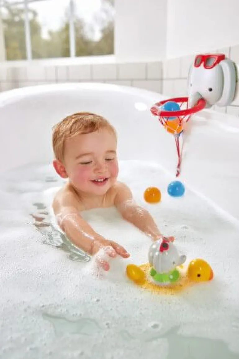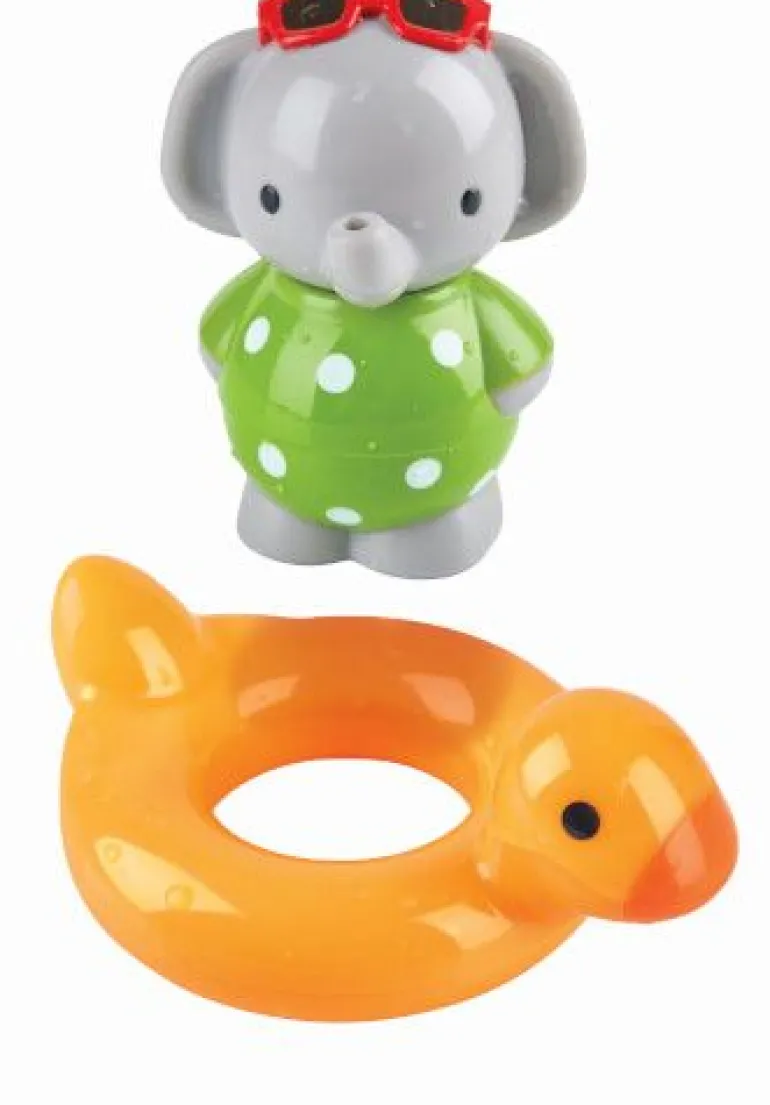 Dieser lustige, sich drehende Elefant ist der perfekte Freund für die Badewanne! Einfach aufziehen, in den Entenring setzen und beobachten wie er sich fröhlich dreht. Wenn das Wasser über 35 warm ist, ändert der Ring seine Farbe.