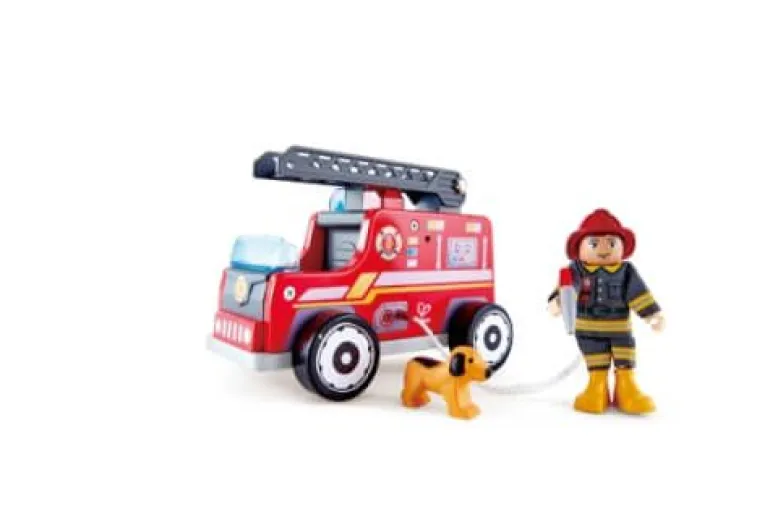 Aus dem Weg! Die Feuerwehr ist auf dem Weg zu einem Brandeinsatz! Stell die Leiter auf, damit der Feuerwehrmann und sein Hund die Flammen löschen können. Sei ein Retter in der Not!