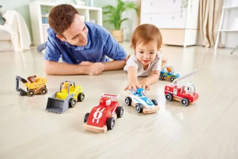Der Arm des Baggers, die Schaufel der Planierraupe und die Leiter des Feuerwehrautos sind schwenkbar und können auf und ab bewegt werden