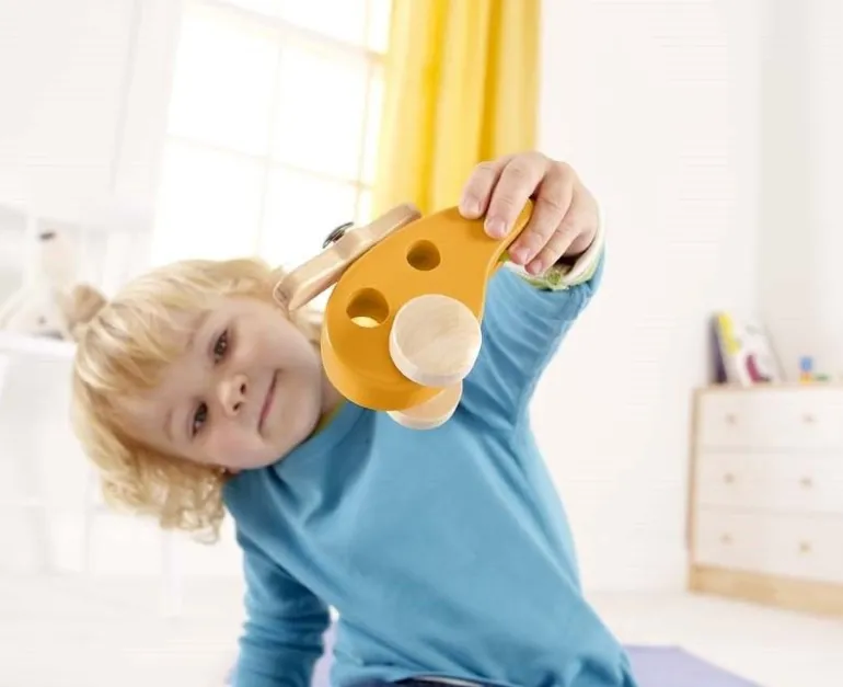 Hoch hinaus! Die Fantasie wird beflügelt, wenn dieser handbetriebene Hubschrauber in die Lüfte steigt.