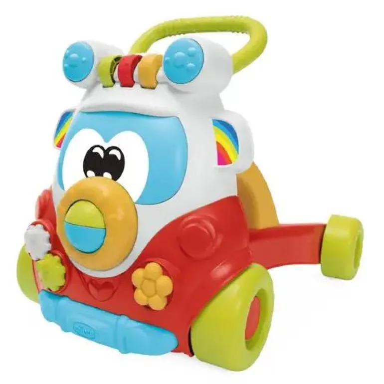 Ein lustiger Lauflerner im Hippie-Stil mit neuem Design aus recyceltem Kunststoff. 4 große Räder, die die Stabilität des Produkts und des Kindes garantieren. Aktivitätscenter mit manuellen Aktivitäten: den rasselnden Ball rollen, die Zahnräder drehen, die 3 Zylinder drehen, die Blume drehen. Neue moderne Farben. Hergestellt aus 80% recyceltem Kunststoff aus industriellem Produktionsüberschuss (Produktkörper, Griff, Räder, Körper- und Räder-Stütze).