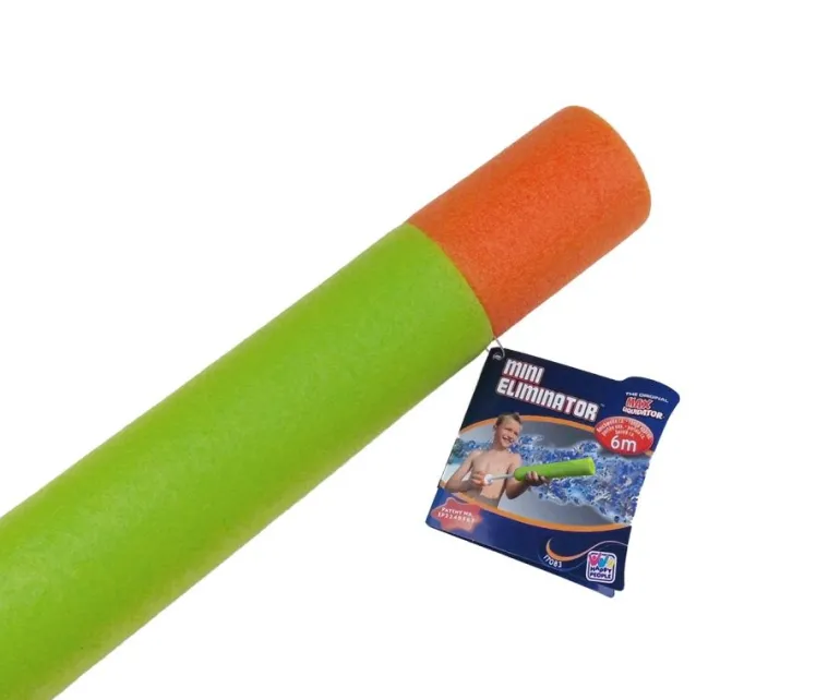 Ca. 33 cm lang bei einem Durchmesser von 5 cm, Reichweite ca. 6 m. Ab 3 Jahren.