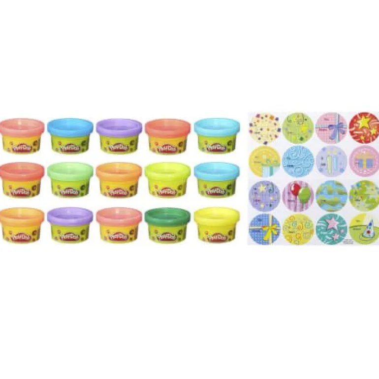 Partyspaß mit Play-Doh! 15 kleine Dosen Play-Doh Knete 28g in verschiedenen Farben machen die Knetparty perfekt. Auch prima geeignet als Party-Mitgebsel oder für die Schultüte. Inklusive Sticker.