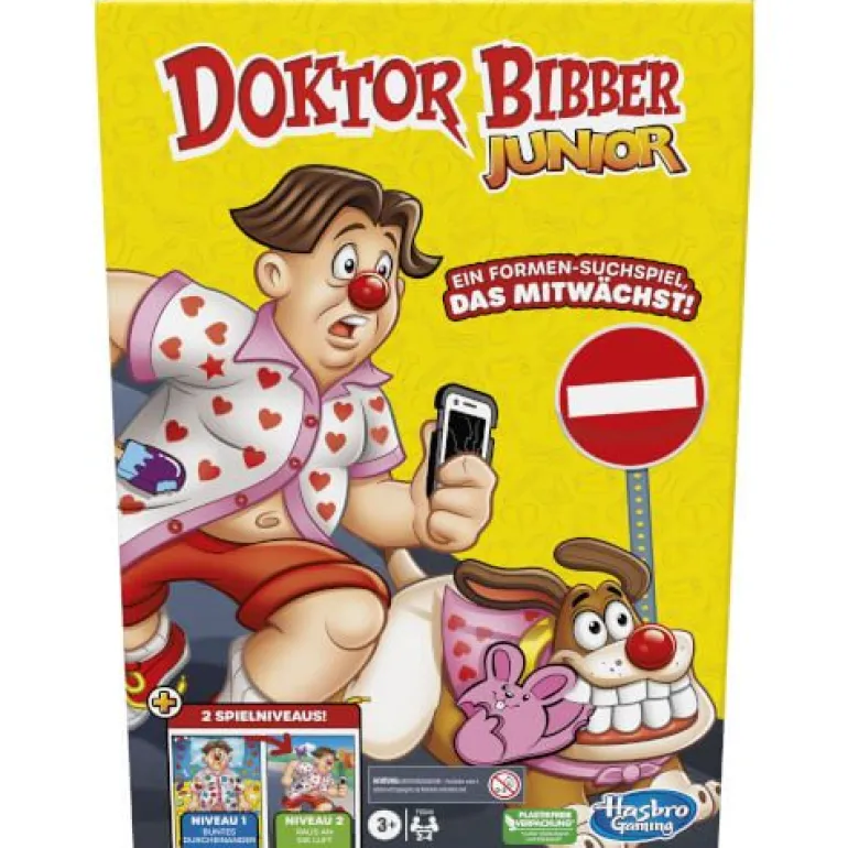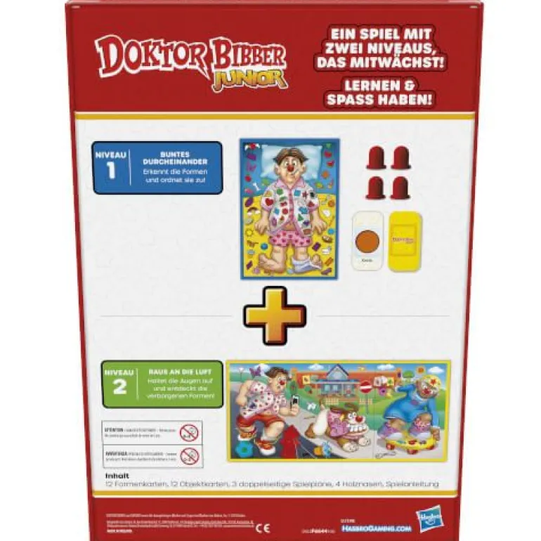Großer Spielspaß mit 2 Spielen in 1! Dieses Doktor Bibber Junior Brettspiel ist ein Formen-Suchspiel, das mit den Fähigkeiten der Kinder „mitwächst“.