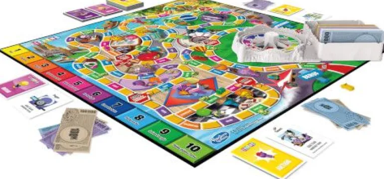 Anschnallen und los! Hier erleben die Spieler eine aufregende Reise voller Drehungen und Wendungen – eben ganz so, wie das Leben so spielt. Mit Hilfe der Drehscheibe und mit bunten Figurenstiften reisen die Spieler um den Spielplan, während das Leben vom Start bis zum Ruhestand viele spannende Wendungen für sie bereithält. Jedes Stopp-Feld stellt einen Meilenstein im Leben dar und die Spieler drehen die Scheibe, um ihr Schicksal zu bestimmen oder ihren Weg weiterzugehen. Steht eine Heirat an? Ist Familienzuwachs geplant oder möchte jemand vorzeitig in den Ruhestand gehen? Aktionskarten gestalten das Leben noch aufregender und wer bereit ist, ein Risiko einzugehen, der investiert in eine Geldanlage und kassiert immer dann, wenn jemand die gewählte Zahl dreht. Doch es gilt, das Geld klug einzusetzen, denn nur, wer am Ende das meiste Vermögen angehäuft hat, gewinnt.