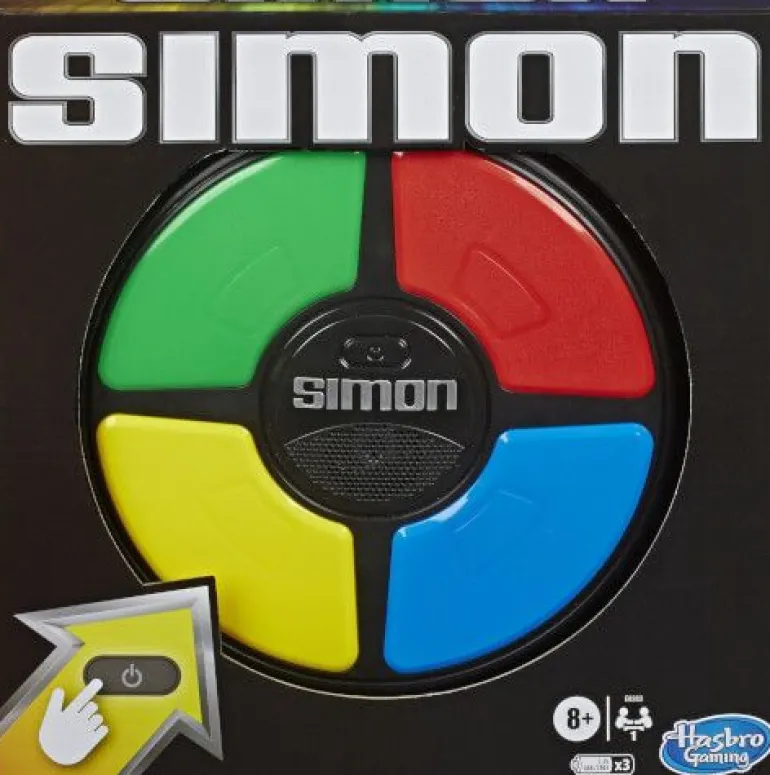 Das Muster wiederholen: Das tolle, elektronische Spiel mit Lichtern und Geräuschen! Es geht darum, die zufälligen Farbfolgen der aufblinkenden Lichter zu wiederholen, indem die bunten Tasten in der richtigen Reihenfolge gedrückt werden. Die Spannung steigt: Das Spiel startet mit einer einfachen Sequenz, doch die Lichterfolgen werden im Laufe des Spiels immer schwieriger. Das klassische Simon Spielprinzip: Beobachten, merken, wiederholen! Das elektronische Simon Spiel kommt in einer handlichen Größe und bietet eine tolle Herausforderung, wenn es gilt, die Muster zu wiederholen und ein höheres Level zu erreichen. Macht auch alleine Spass: Simon kann mit Freunden oder alleine gespielt werden. Die Spieler versuchen, einen neuen High Score zu erzielen, indem die längst mögliche Farbfolge vervollständigt wird, ohne einen Fehler zu machen