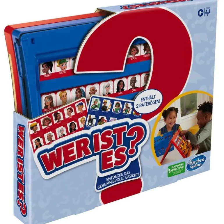 Die Bögen lassen sich ganz einfach in die Ratetafeln schieben und wieder entfernen, sodass das Spiel im Nu aufgebaut ist. Dank der praktischen Klappfunktion eignet es sich auch prima für unterwegs. Wer ist es? ist für 2 Spieler und bietet Spürnasen ab 6 Jahren unterhaltsamen Ratespaß. Hasbro Gaming sowie alle dazugehörigen Begriffe sind Marken von Hasbro.