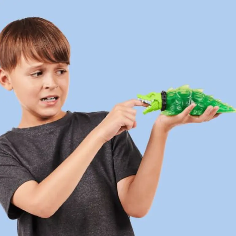 Mach dich bereit für echt starke Action! Die Heroes of Goo Jit Zu Goo Shifters sind da! Dein dehnbarer, stretchy Lieblingsschurke Rock Jaw meldet sich in seiner ursprünglichen Form zurück und wartet nur darauf, dass du ihn noch stärker machst! Zerdrücke Rock Jaws Körper, um seine „Glibber-Verwandlung zu aktivieren! Sieh zu, wie sich der Glibber im Inneren von Rock Jaws Körper vor deinen Augen verwandelt, um seine inneren Kräfte freizusetzen! Rock Jaw hat seine ursprüngliche Krokodil-Form!