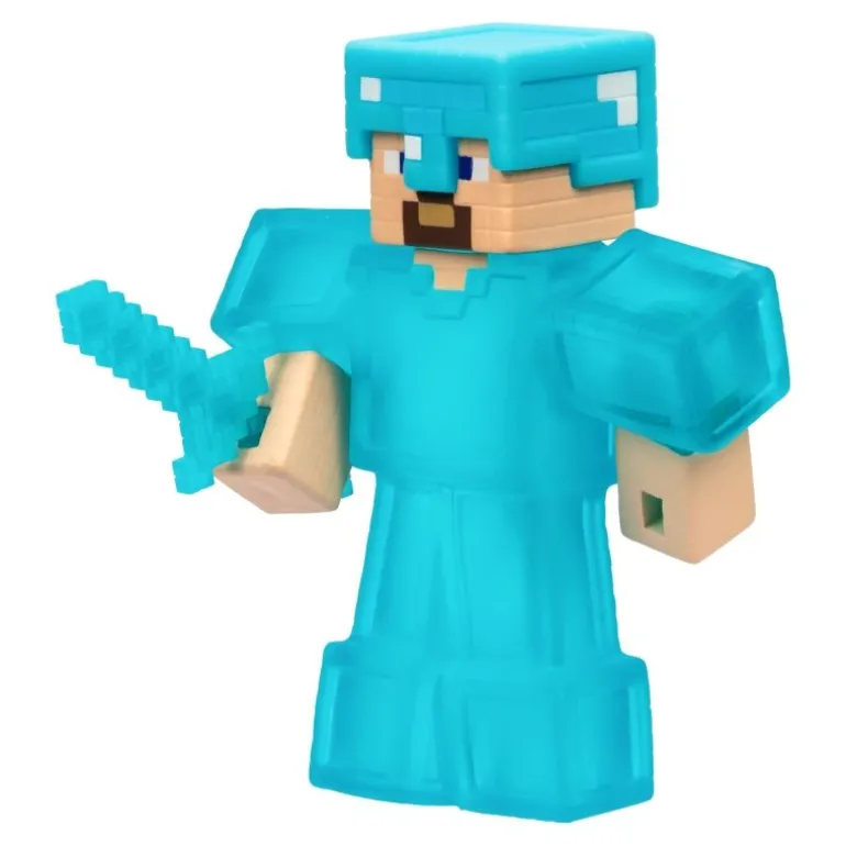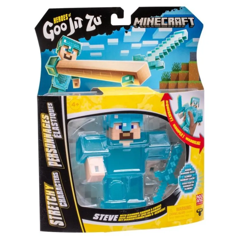 Heroes of Goo Jit Zu – dehnbare Minecraft-Figur. Steve mit Diamant-Rüstung & Schwert. Mit verstecktem Diamant-Element im Inneren der Glibberfüllung! Er dehnt sich bis auf das Dreifache seiner Größe aus. 2 Stück zum Sammeln. Die Minecraft-Charaktere haben sich unter die Heroes of Goo Jit Zu gemischt und sind auch noch dehnbar, knirschend und biegsam! Die Minecraft-Figur Steve mit Diamant-Rüstung & Schwert hat eine einzigartige elastische Glibberfüllung! Quetsche und dehne deine Minecraft-Figur bis auf das Dreifache ihrer Größe und sieh zu, wie sie wieder ihre ursprüngliche Form annimmt. Drücke und dehne deine Steve-Figur von Goo Jit Zu, um das versteckte Diamant-Element im Inneren zu entdecken. Die Minecraft-Figuren hüpfen aus dem Cyberspace direkt in deine Hände. Auf in neue Abenteuer mit den biegsamen Heroes of Goo Jit Zu!