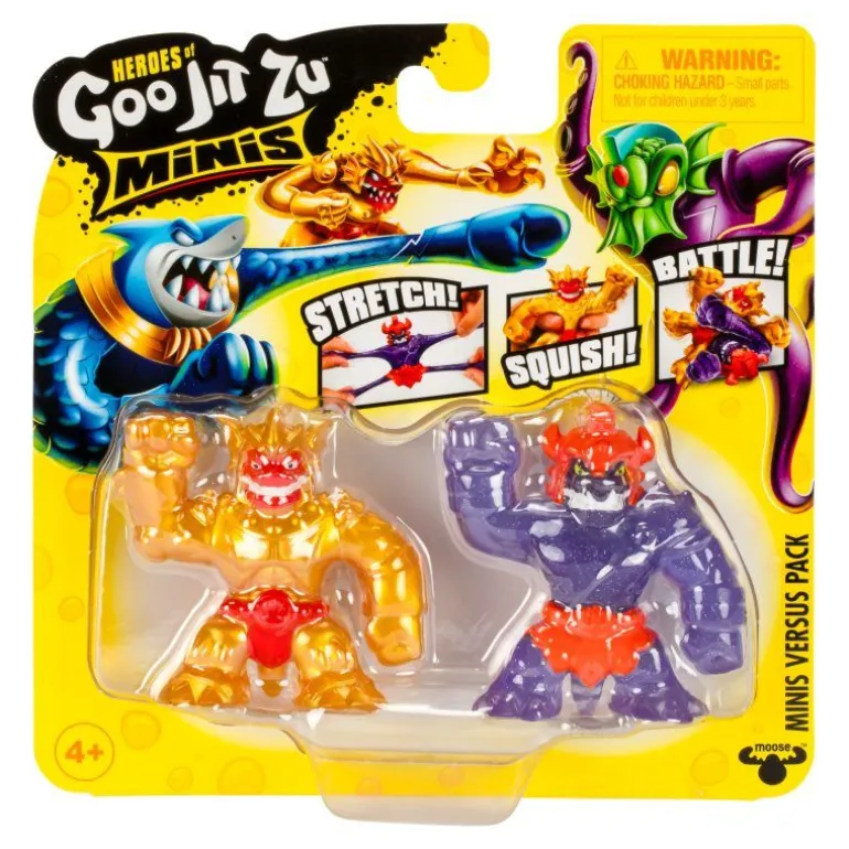 The Heroes of Goo Jit Zu Minis sind zurück, aber dieses Mal mit MEHR Charakteren zum Dehnen,quetschen und kämpfen! Die favorisierten Helden, Blazagon, Thrash & Pantaro,kehren zurück zum Kampf mit den bedrohlichen Schurken, Corruptagon, Hammerface & Orbitox. Ein epischer Kampf zwischen „Goo“ und dem Bösen erwartet dich im Mini-Maßstab, denn jede Packung enthält 1 Goo Jit Zu Helden und 1 Bösewicht! Mit einer Größe von nur 6 cm sind diese Helden zwar klein, aber sie sind bereit zu kämpfen! Dehne jede Figur bis zum 4-fachen ihrer Größe für EPISCHE Kämpfe! Wer wird sich durchsetzen zwischen: Blazagon & Corruptagon, Thrash & Hammerface, und Pantaro & Orbitox? Begib dich auf eine neue Art zu spielen und rette den Tag gegen das Böse mit diesen EPIC Mini Goo Jit Zu Figuren!