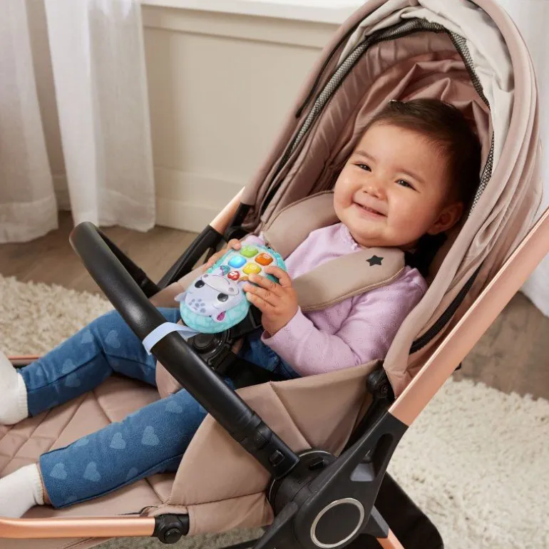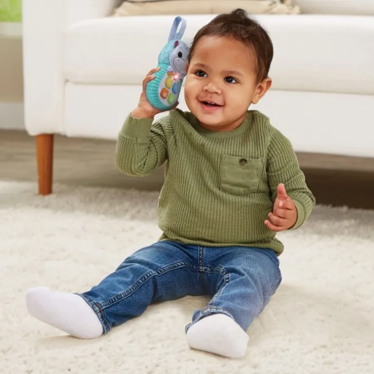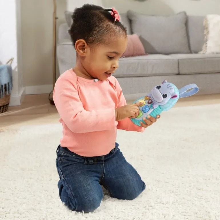 Lustige Anrufe simulieren mit dem freundlichen Nilpferd. Kinderfreundliches Spieltelefon in Nilpferdoptik mit bunten Tasten aus Weichplastik. Leuchtende Herztaste löst Melodien, Lieder, Geräusche und Sätze aus. Nilpferdtaste: drückt man auf die Schnauze des Nilpferds, spricht und singt es. 4 bunte Weichplastiktasten mit Sätzen: gelbe Sonnentaste, blaue Anruftaste, orangefarbene Nachrichtentaste, grüne Kamerataste. Dank praktischer Schlaufe kann das Hippo#Handy an Gitterbettchen, Kinderwagen etc. angebracht werden. 5 Lieder und 15 Melodien. Kindersicheres Batteriefach und Abschaltautomatik. Demobatterien sind enthalten.