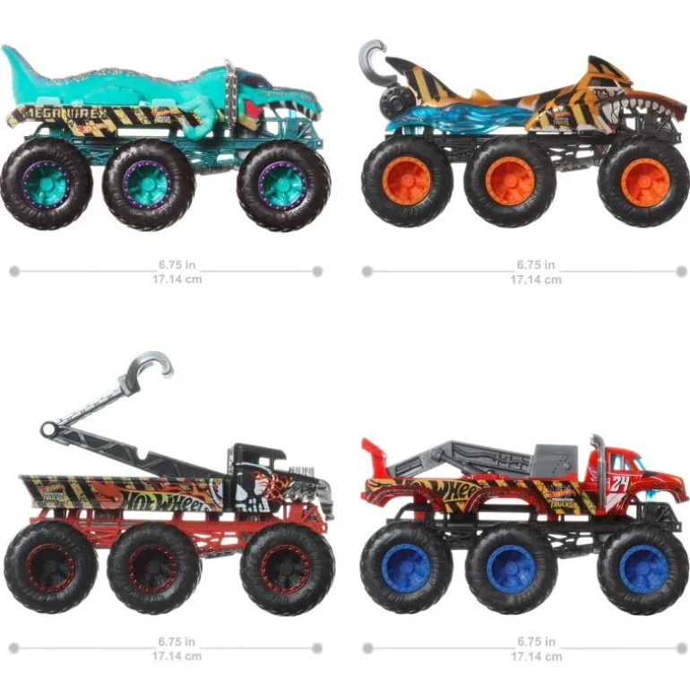 Brandneu: Die Monster Truck Big Rigs im Maßstab 1:64 sind echte Dauerbrenner und können andere Monstertrucks transportieren und abschleppen! Ihre einzigartige 6-Rad-Silhouette fällt sofort ins Auge und verstärkt den Charakter der Helden-Trucks. Dabei sind sowohl beliebte Kreatur-Trucks als auch klassische Modelle vertreten. ab 3 Jahren