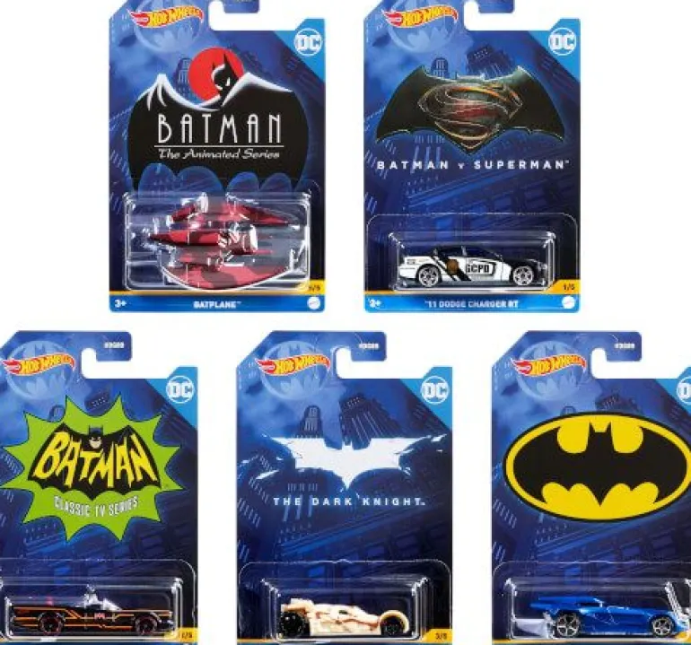 In dieser Hot Wheels Batman-Kollektion sind das Batmobil und viele andere Fahrzeuge enthalten, die man von den Straßen von Gotham City kennt! Diese Die-Cast-Batman-Fahrzeuge im Maßstab 1:64 faszinieren durch originalgetreue Dekore und Styles, die aus dem Comic, den TV-Serien und den Filmen bekannt sind. Mit ihnen lassen sich die legendären Verfolgungsszenen perfekt nachspielen. Auch die außergewöhnliche Verpackung wird Sammler begeistern. Kinder und Sammler werden die Details und die Verarbeitung lieben. Diese Fahrzeuge wollen alle haben! Alle Artikel separat erhältlich. Abweichungen in Farbe und Gestaltung vorbehalten.