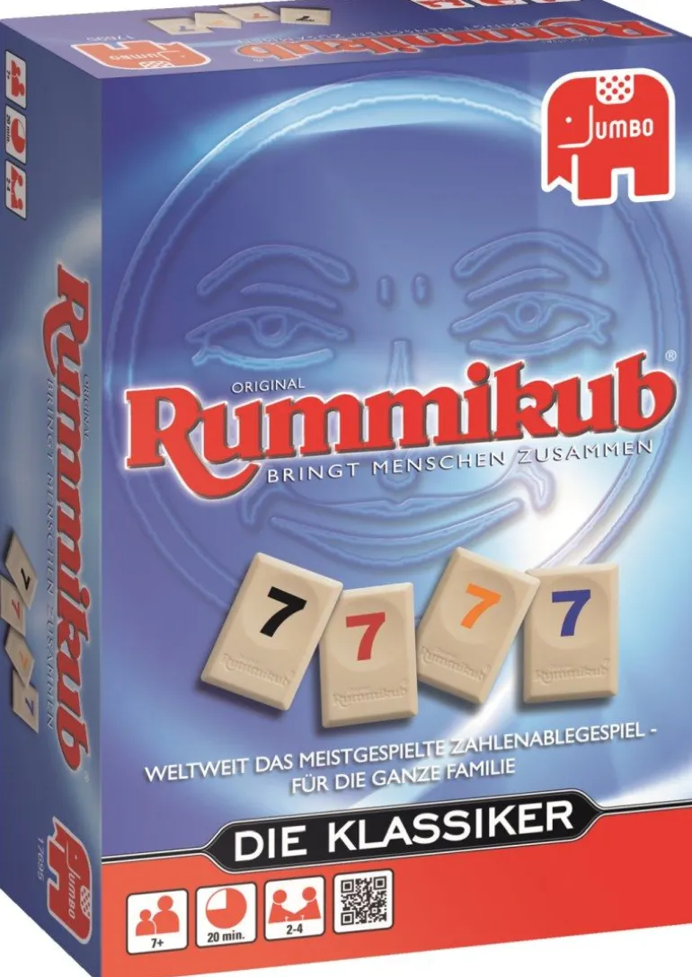Original Rummikub – bringt Menschen zusammen. Weltweit und jederzeit. Gewonnen hat der Spieler, der alle seine Spielsteine abgelegt hat und die höchste Punktzahl erzielt. Abgelegt werden die Spielsteine in Reihen und Gruppen nach dementsprechenden Werten und Farben. Besiegen Sie Ihre Mitspieler, indem Sie sich eine gute Strategie ausdenken und clever Ihre Steine ablegen.Der Joker ist der Trumpf unter den Spiel steinen, er kann überall angelegt werden.Aber vorsicht: Sollte er am Ende noch auf Ihrem Brettchen stehen, verlieren Sie 30 Punkte.