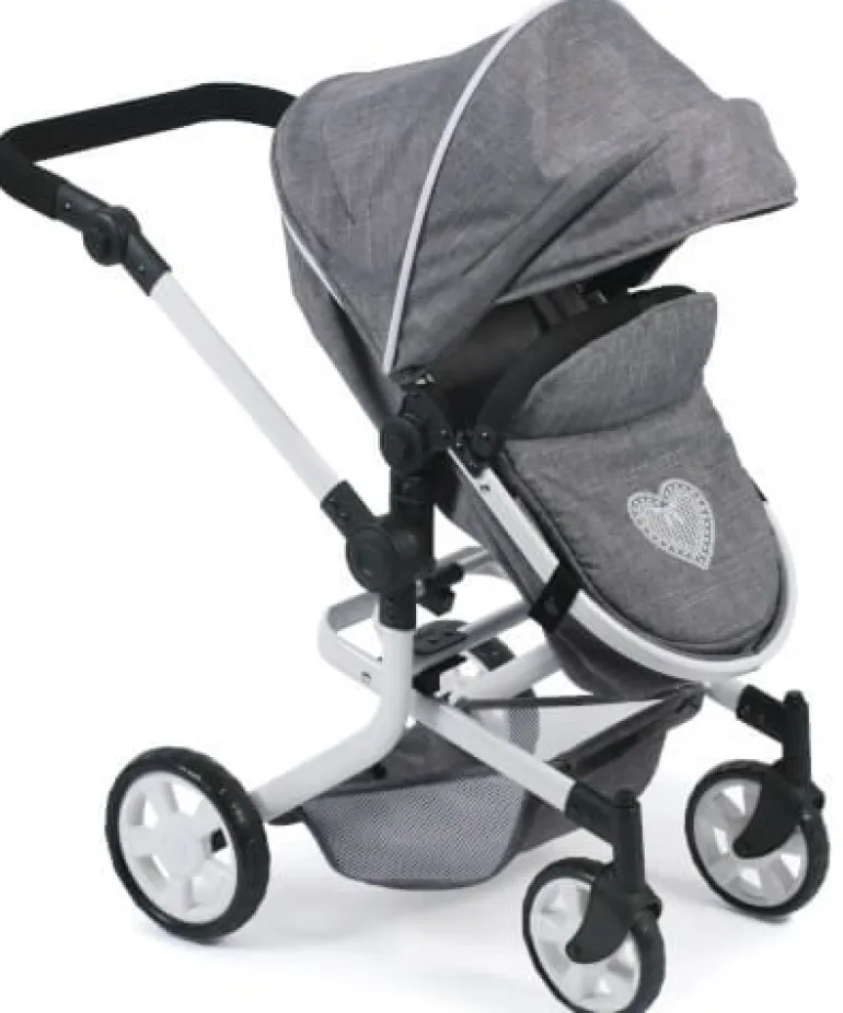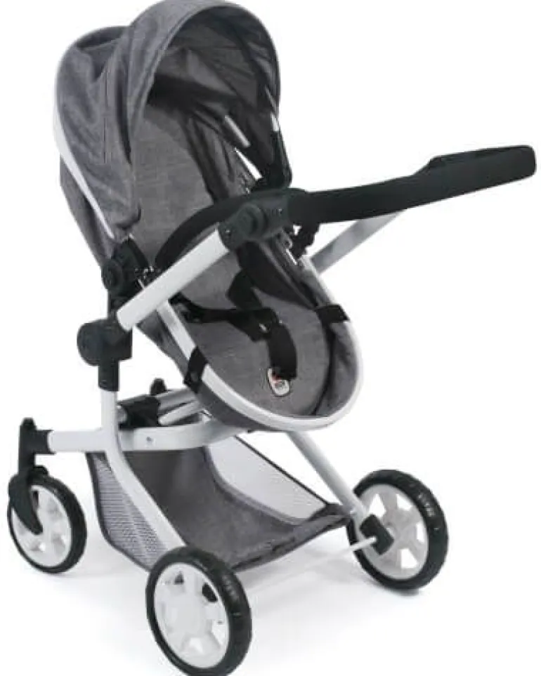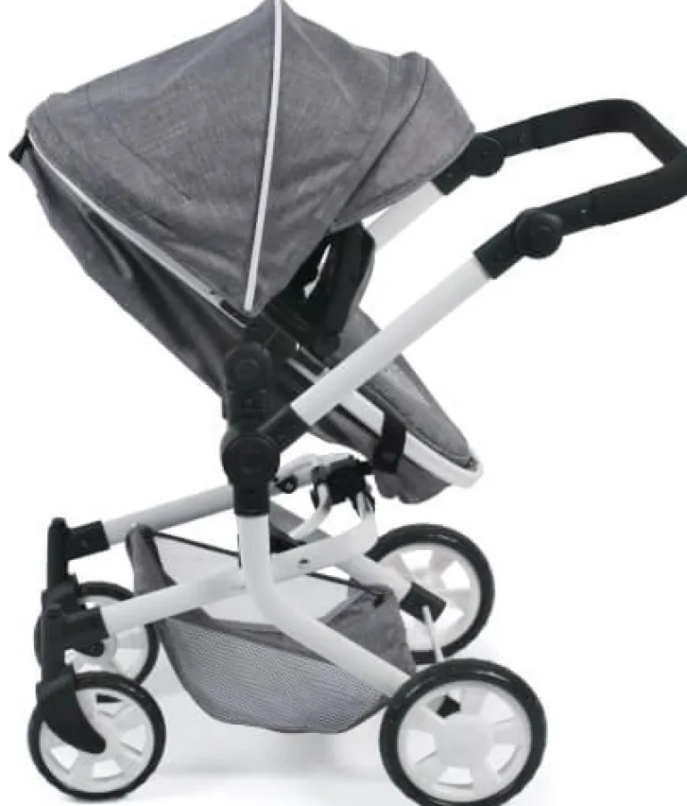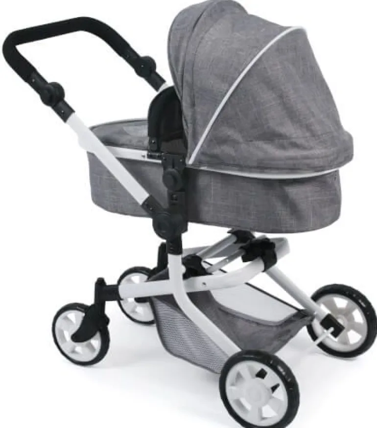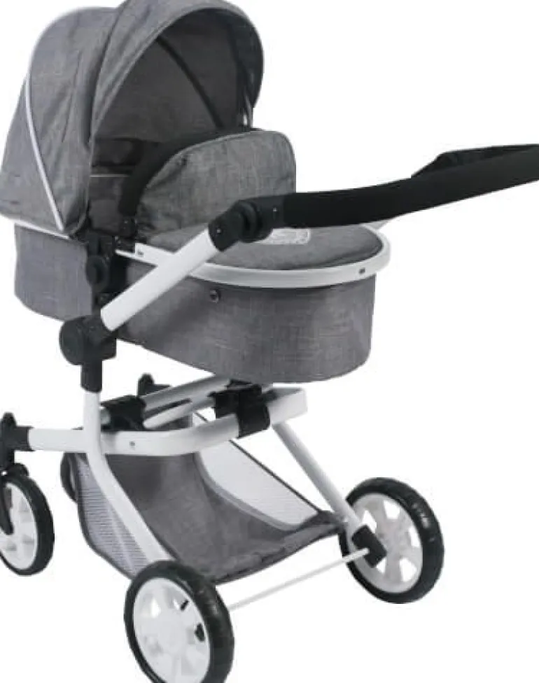 Brandneuer und topmodisch gestylter Kombi-Puppenwagen mit vielen praktischen Funktionen und schickem Gestell. Die schwenkbaren Vorderräder ermöglichen kinderleichtes Kurvenfahren. Der Sportsitz hat einen Sicherheitsbügel und lässt sich mit wenigen Handgriffen zum Wannenaufsatz mit ebener Liegefläche verwandeln. Die Abdeckung der Babywanne dient gleichzeitig als Winddecke für den Sportsitz. Der Sportsitz bzw. die Babywanne können beidseitig aufgesteckt werden, sowohl in Fahrtrichtung wie auch mit Blick zur Puppenmutti. Der Schiebegriff ist höhenverstellbar von ca. 47 bis 80 cm und passt sich so nahezu jeder Körpergröße an. Zudem lässt sich der Schieber schwenken, so dass der Puppenwagen von beiden Seiten aus gefahren werden kann. Mit Sonnenverdeck und Gepäcknetz für diverse Utensilien. Der Kombi Mika kann besonders einfach und klein zusammengeklappt werden. Für Puppen bis ca. 52 cm. Artikelmaße: 73 x 41 x 82 cm. Ab 3 Jahren.