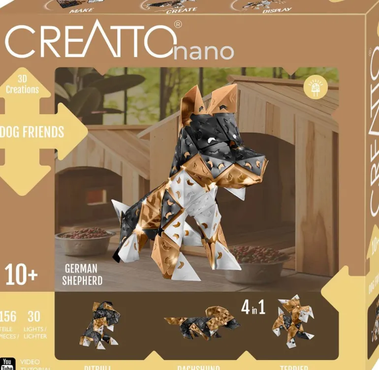 Wuff! Mit diesem besonderen Bastelset werden niedliche Hundefreunde als detailgetreue Kreationen mit LED-Beleuchtung gebaut. Wie Schäferhund, Terrier, Dackel oder Pitbull gelingen und wie die Lichterkette eingebaut wird, zeigen gedruckte Anleitung oder Videotutorials. Bei den vier niedlichen 3D-Modellen findet garantiert jedes Kind seine Lieblings-Hunderasse als dekorative Lampe für das Kinderzimmer! So erstrahlen nicht nur die Hunde, sondern auch die Augen von kleinen und großen Hunde-Fans. Ein tolles 3D-Puzzle als DIY-Projekt oder Geburtstagsgeschenk für Kinder ab 10 Jahren!