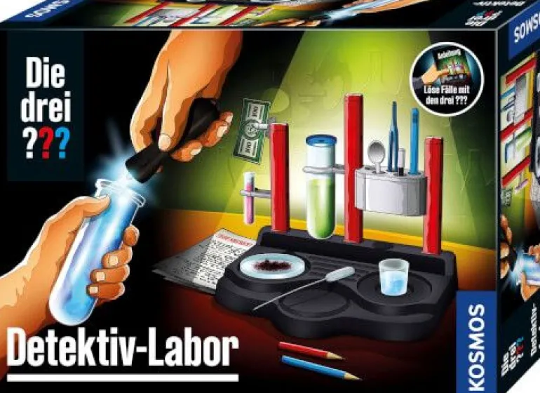 Was genau ist am Tatort geschehen? Wurde irgendwo ein Fingerabdruck übersehen? Dinge mit UV-Licht sichtbar machen, geheime Tinte herstellen, Versuche mit Säuren und Basen: Spurensicherung ist spannende Kleinstarbeit. Kinder ab 8 Jahren lernen mit diesem Set die aufregende Welt der Forensik kennen. Spannende Kurzgeschichten von Justus, Peter und Bob aus Rocky Beach leiten in die Versuche ein. Gemeinsam mit ihren Lieblingshelden schlüpfen Mädchen und Jungen in die Rolle von Kriminologen. Dabei lernen sie mithilfe von Chemie Verborgenes sichtbar zu machen. Eine geniale Kombi: Detektiv Gadget, Rollenspiel und Labor in einem! Das Detektiv-Spiel ist ein super Geburtstagsgeschenk.