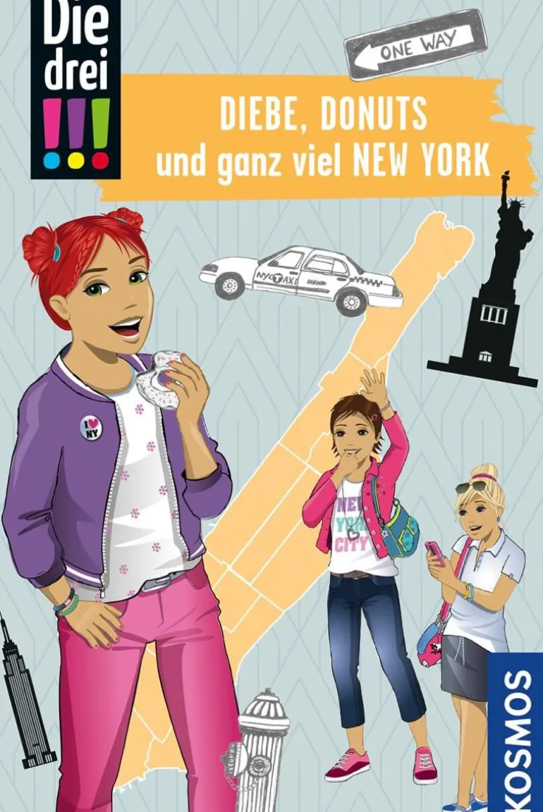 Kim, Franzi und Marie sind „Die drei !!!. Mutig und clever ermitteln die drei Detektivinnen und sind jedem Fall gewachsen. Franzis Mutter hat einen Backkurs gewonnen – in New York! Die drei Freundinnen steigen natürlich mit ins Flugzeug Richtung USA. Doch als in ihrer Wohngegend in einem Community Garden Sabotage verübt wird, ist es mit dem Sightseeing erstmal vorbei. Und dann wird auch noch in einem Aktionshaus eingebrochen. Genug zu tun für die drei Detektivinnen in der Stadt, die niemals schläft. Das Extra in diesem Band: Kim, Franzi und Marie verraten Sightseeing-Tipps und witzige Fun-Facts zum Sehnsuchts-Ziel New York. Außerdem sind ein Stadtplan und ein nützlicher Sprachführer enthalten.
