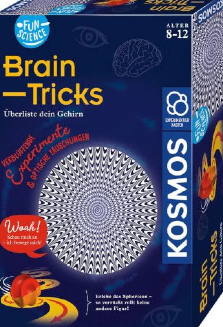 Eine Achterbahnfahrt für das Gehirn! Mit den Brain Tricks erleben Kinder verblüffende Illusionen und Effekte mit eigenen Augen. Von doppeldeutigen Figuren über selbst entworfene 3D-Bilder zum faszinierenden Sphericon – jedes Experiment ist gleichzeitig ein kleines Rätsel. Die aufregende Tour quer durch die Welt der optischen Täuschungen zeigt, wie unser Gehirn arbeitet. Dabei erklärt die Anleitung, was man seinen Augen eigentlich gar nicht glauben will! Am besten die Multi-Funktions-Brille direkt aufsetzen und durch verschiedene Experimente die verblüffende 3D-, Scharf- und Spektral-Sicht testen. Dieser KOSMOS Experimentierkasten ist wie Jogging fürs Gehirn für Kinder zwischen 8 und 12 Jahren, und fasziniert immer wieder aufs Neue!