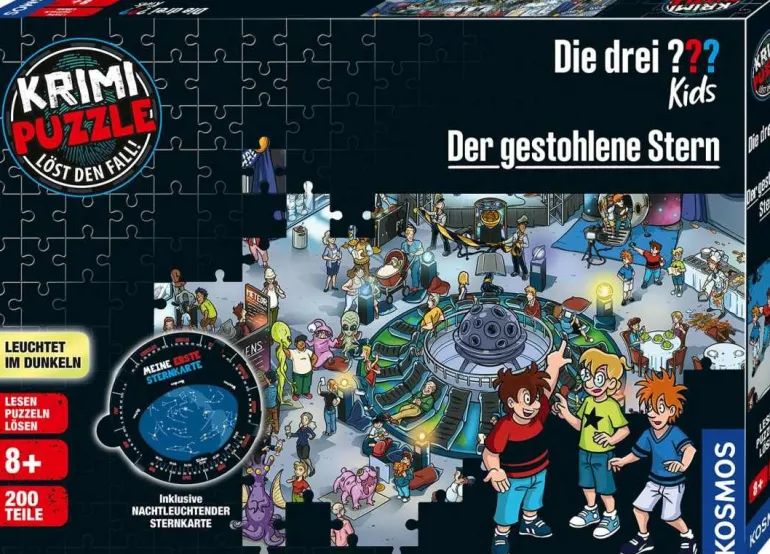 Ein neues, aufregendes Abenteuer wartet auf alle Die drei ??? Kids-Fans. Zuerst die Krimigeschichte lesen, dann das 200-teilige Puzzle legen und mit dem beiliegenden Extra entscheidende Hinweise auf dem Leuchtpuzzle finden. Ein spannender Puzzle- und Krimi-Spaß für Knobelfreunde ab 8 Jahren.
