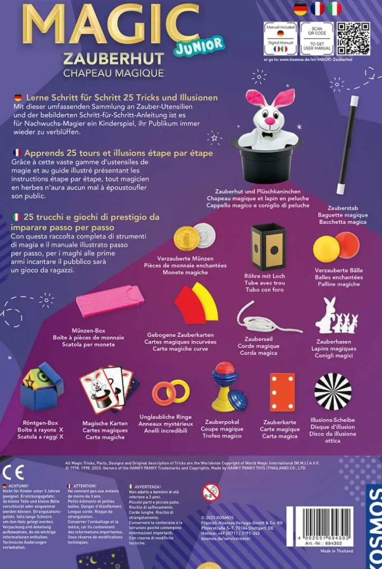 Zaubern lernen ist kinderleicht! Zauberhut und Plüschkaninchen, verzauberte Münzen und magische Karten – in der Box stecken viele tolle Utensilien für die perfekte Show. Wie die 25 Tricks und Illusionen garantiert gelingen, zeigt die anschauliche farbige Anleitung.