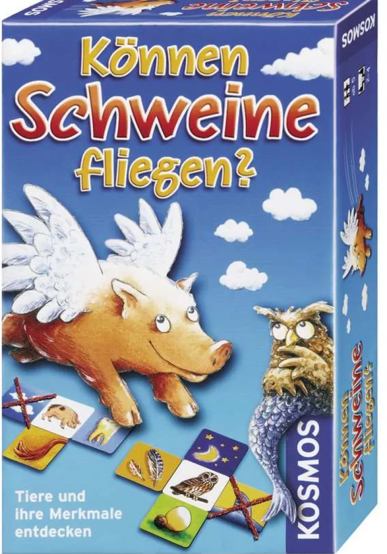 Können Schweine fliegen? ABER NEIN!!! Doch nicht immer ist es so einfach, Tiere einzuschätzen: Hat der Igel einen Schwanz? Lebt der Pandabär frei in Europa? Viel Spaß ist garantiert, wenn die Spieler Merkmale von 38 heimischen und exotischen Tieren entdecken. Dabei ist nicht nur Wissen gefragt, sondern auch schnelle Reaktion. Aber Achtung! Wer nicht überlegt, erwischt schnell ein falsches Merkmal – denn viele Merkmale sind nicht offensichtlich und nicht jeder Vogel kann fliegen … Mini-Ausgabe des Originalspiels mit vielen neuen Tieren und Merkmalen!