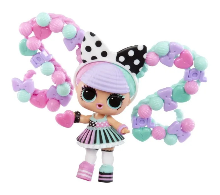 Werde zum Stylisten mit den L.O.L. Surprise! Make-A-Hairstyle Tots! Die Püppchen kommen mit Haarteilen, die sich am Kopf befestigen lassen und mit bunten Perlen verziert werden können. Mit etwas Wasser lassen sich die Perlen an den Haarteilen fixieren, um einzigartige Frisuren für die Puppen zu kreieren. Inkl. Puppe, Perlen, Haarteilen, Sprühflasche und Accessoires.