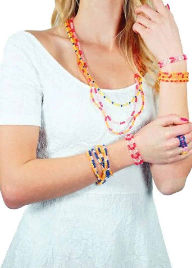 Ringe, Armbänder, Ketten und Colliers in allen Formen und Farben mit 2.000 schillernden Kunststoff-Perlen zum selbst gestalten. Ab 8 Jahren.