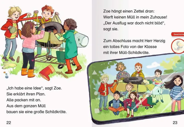 Lesen lernen wie im Flug!An dieser Schule ist was los: Amir liebt die Sportstunde, Ben nicht. Doch zum Glück hat Amir eine Idee, wie Ben endlich mehr Spaß im Unterricht hat. Auch die Klasse 1b muss sich etwas einfallen lassen, denn bei ihrem Schulausflug entdecken die Schüler, dass das Zuhause einer Schildkröte vom vielen Müll bedroht ist. Und Schulgespenst Robbi hat ein anderes Problem: Warum gruseln sich die Kinder denn nicht vor ihm?Lesen lernen wie im Flug! Die Kinderbücher der Reihe Leserabe – 1. Lesestufe wurden mit Pädagogen entwickelt und richten sich an Leseanfänger ab der 1. Klasse. Kurze Texte in großer Fibelschrift sichern erste Leseerfolge und steigern die Lesekompetenz von Mädchen und Jungen ab 6 Jahren. Mit Belohnungsstickern. Empfohlen von Stiftung Lesen, gelistet bei Antolin.