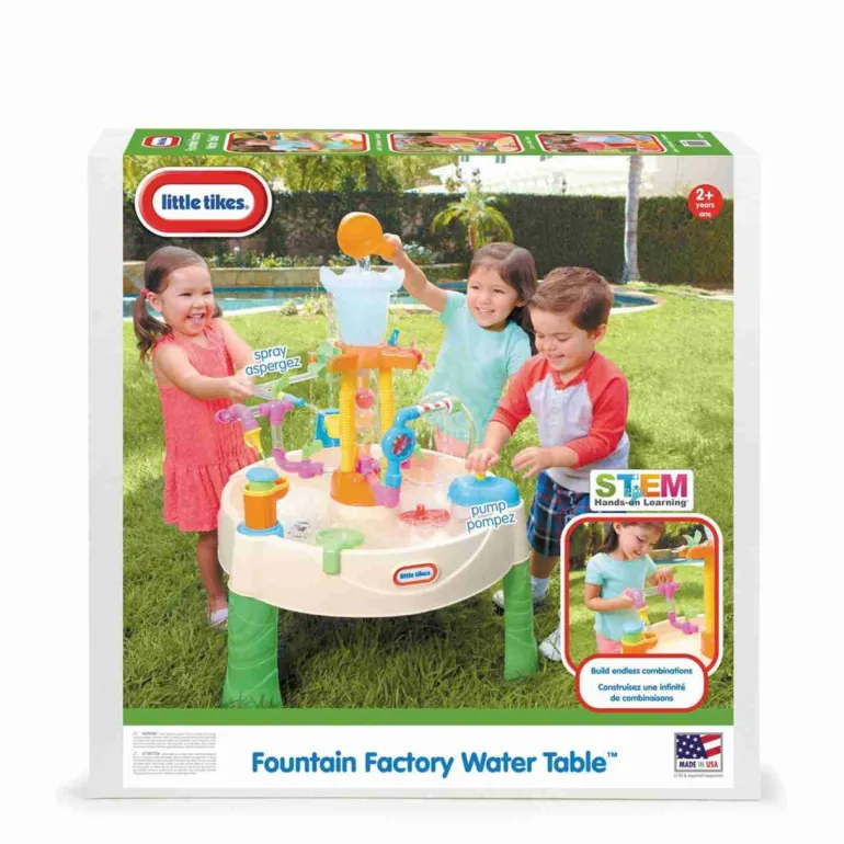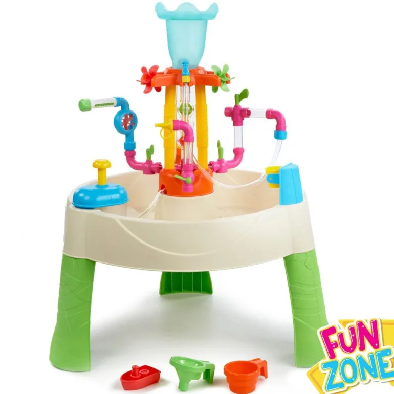 Dieser Wasserspieltisch ist vollgepackt mit vielen Funktionen und Spielmöglichkeiten. Mit untereinander austauschbaren Rohren und Verbindungsstücken wird der Wasserspieltisch Springbrunnen Fabrik die motorischen Fähigkeiten und die Fantasie von Kleinkindern schulen. Außerdem wird das Teilen gefördert. Dieser dynamische Wasserspieltisch für Kleinkinder hat genau die passende Größe für die Kleinen, sodass sie stundenlang spielen werden.