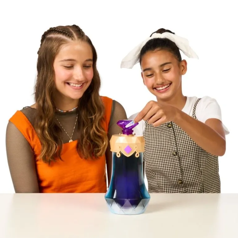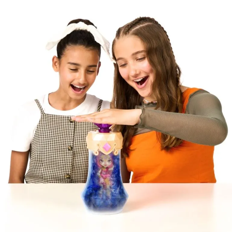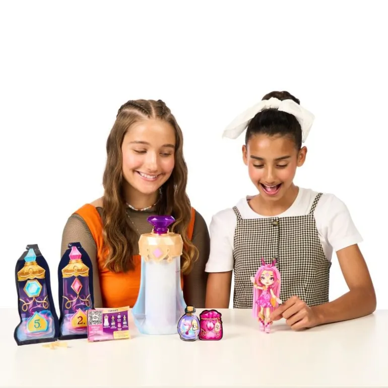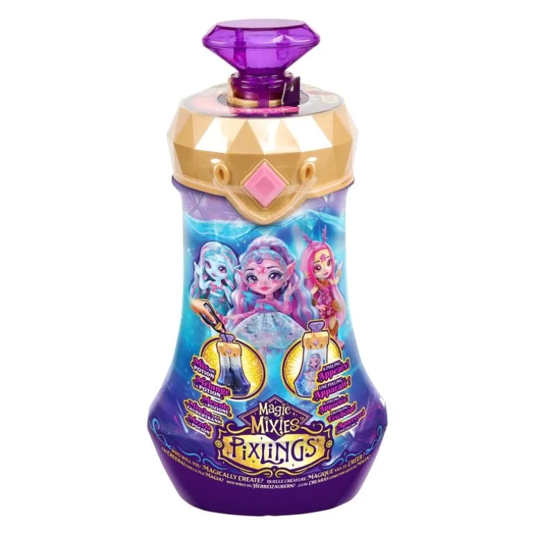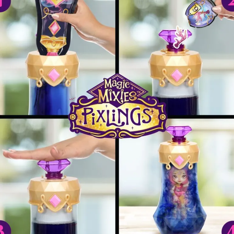 Tauche ein in die zauberhafte Welt der Magic Mixies Pixlings, braue einen Zaubertrank und enthülle deinen magische Pixlings-Puppe Deerlee! Dein Pixling-Puppe sorgt für magische Momente – sie kommt aus einem Land, in dem magische Zaubertränke aus Wasserfällen und Brunnen sprudeln. Braue deinen eigenen Zaubertrank und enthülle deine wunderschöne Pixling-Puppe auf magische Weise. Gib dazu einfach die magischen Zutaten in die Zaubertrank-Flasche, füge Wasser hinzu und rühre die Mischung um. Der Zaubertrank vermischt sich dann in der Flasche und färbt sich tiefblau. Sprich anschließend die magischen Worte „Magicus Mixus”. Drehe dabei den Kristall und drücke ihn danach.