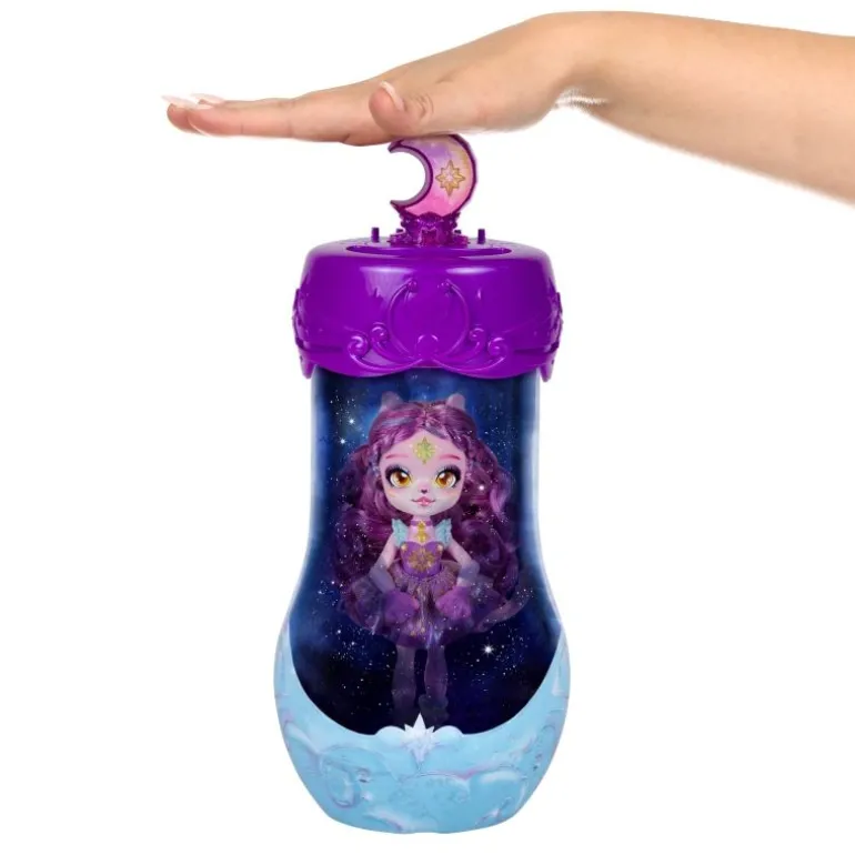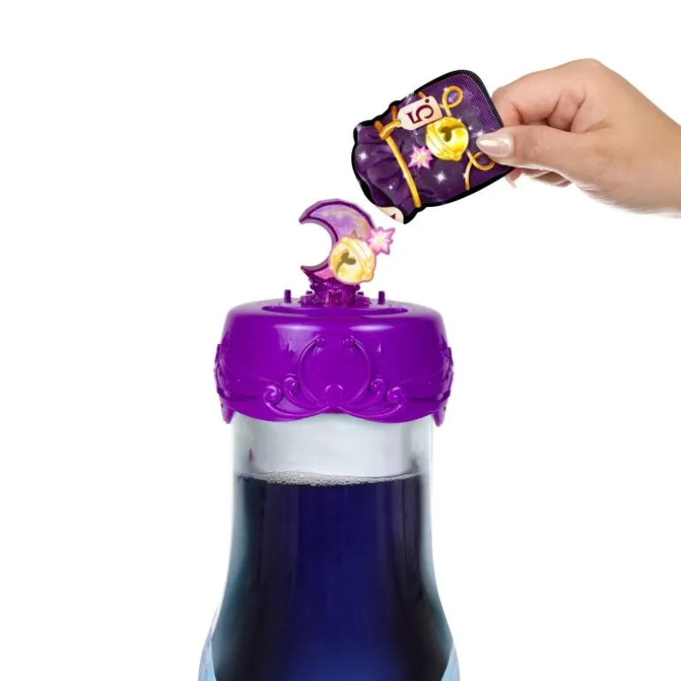 Willkommen im Shimmerverse! Die Pixlings laden dich ein in ihre zauberhafte Welt voller Magie und endlosem Spielspaß. Welches Magic Mixies Pixling wirst du herbeizaubern, wenn du einen schimmernden Zaubertrank braust und eine Pixling-Puppe enthüllst? Gib für den Zaubertrank einfach die im Lieferumfang enthaltenen magischen Zutaten in die Flasche, füge Wasser hinzu und rühre die Mischung um. Der Trank blubbert und verwandelt sich in eine schimmernde, dunkelblaue Mixtur. Sprich die magischen Worte „Magicus Mixus“, während du am Kristallmond-Aufsatz drehst und ihn herunterdrückst. Der Trank klart vor deinen Augen auf und das Pixling wird enthüllt! Diese zauberhafte Pixling-Puppe lässt sich einfach aus der Flasche entnehmen und ist komplett trocken. Der Spielspaß kann also sofort beginnen! Auf der Stirn von Catlyn, dem Katzen-Pixling, ist ein umwerfender Sternenkristall, und die Kraft ihres Zaubertranks ist „Wünsche werden wahr“. Catlyn ist 16,5 cm groß und kann dank 7 beweglicher Gelenke beliebig in Pose gesetzt werden. Catlyn ist sorgfältig gestylt und hat wunderschönes langes, kämmbares Haar, ein Stoffkleid mit glitzernden Motiven und individuelle Schuhe. Im Lieferumfang enthalten ist auch ein Puppenständer, mit dem du das Spielzeug in Pose bringen kannst. Es gibt 4 Pixlings zum Sammeln. Welche wirst du wohl als Nächstes entdecken? Pheona, das Phönix-Pixling, Marena, das Eismeerjungfrau-Pixling, oder Faye, das Feen-Pixling? Vielleicht findest du Unia aus der Limited Edition! Schließ dich den Pixlings bei ihren Abenteuern durch das Shimmerverse an und entdecke eine magische Welt voller Spaß und Spannung.