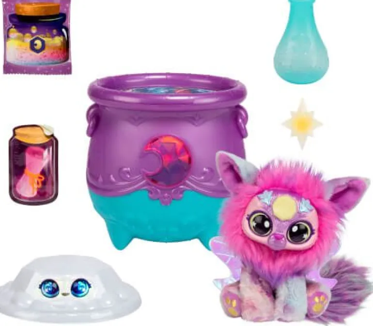 MAGIC MIXIES S4 Magical Gem Surprise Zauberkessel – Mond Erlebe echte Magie mit dem Magic Mixies Shimmerverse Cauldron. Dein Kessel enthält alle magischen Zutaten, die du brauchst, um einen süßen pelzigen Freund zu erschaffen! Platziere den Kristal auf der Stirn deines Mixies und bringe seine Augen zum Schimmern. Wen wirst du auf magische Weise erschaffen? (Sortiert als Eule und Wolf)