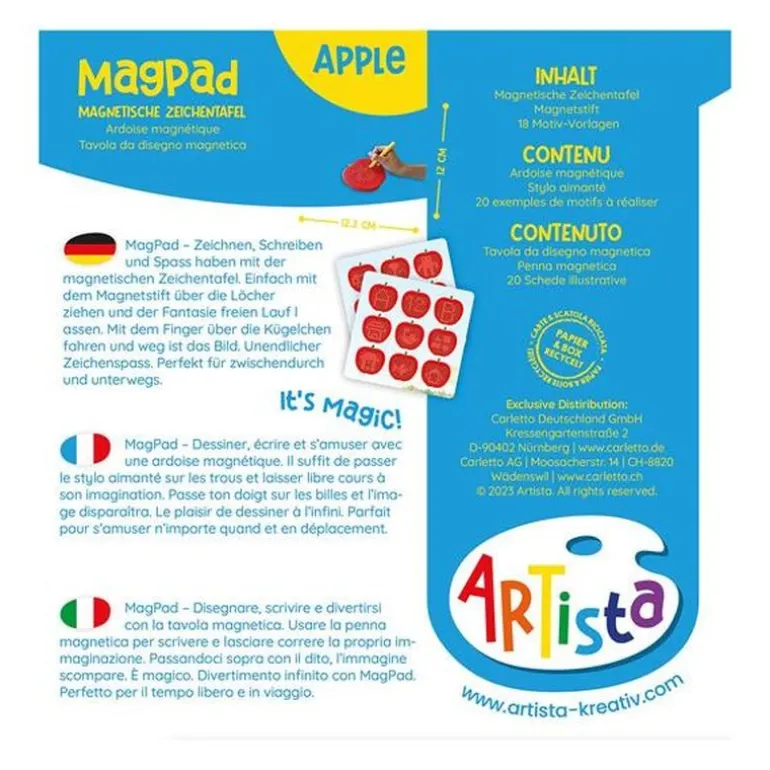 Zeichnen, Schreiben und Spass haben mit der magnetischen Zeichentafel. Einfach mit dem Magnetstift über die Löcher ziehen und der Fantasie freien Lauf lassen. Mit dem Finger über die Kügelchen fahren und weg ist das Bild. Unendlicher Zeichenspass. Perfekt für zwischendurch und unterwegs.
