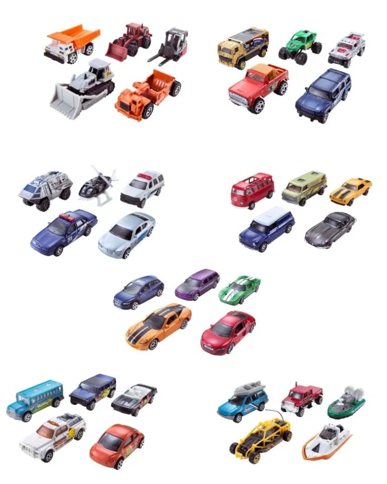 5 starke Matchbox Fahrzeuge in einem Set in einer dreidimensionalen Geschenk-Packung, welche die Kids gleichzeitig von drei Seiten bewundern können.