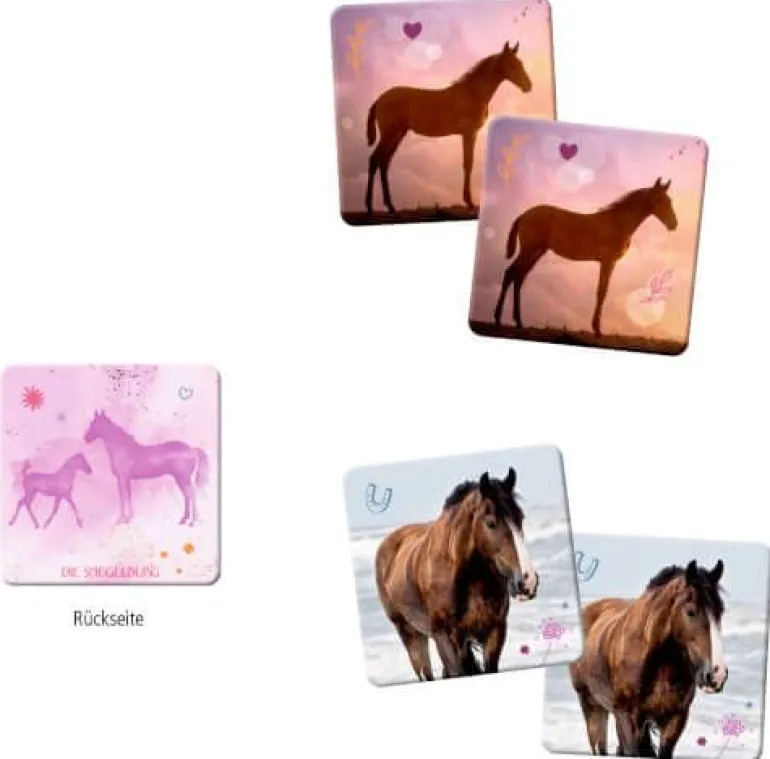 Das liebevoll gestaltete Memo-Spiel von Die Spiegelburg darf in keinem Kinderzimmer fehlen: Mit 36 Bildpaaren, die eine breite Palette an zauberhaften Pferde-Motiven abbilden, lädt dieses Memo-Spiel Kinder und Erwachsene dazu ein, in die Welt der Pferde einzutauchen. Die beiliegende Anleitung sorgt für einen schnellen Spielstart und macht das Memo-Spiel zu einer idealen Wahl für 2 bis 6 Spieler. So werden beim gemeinsamen Spiele-Nachmittag ganz nebenbei die Gedächtnisleistung und die Konzentrationsfähigkeit von großen und kleinen Pferdefreunden geschult.