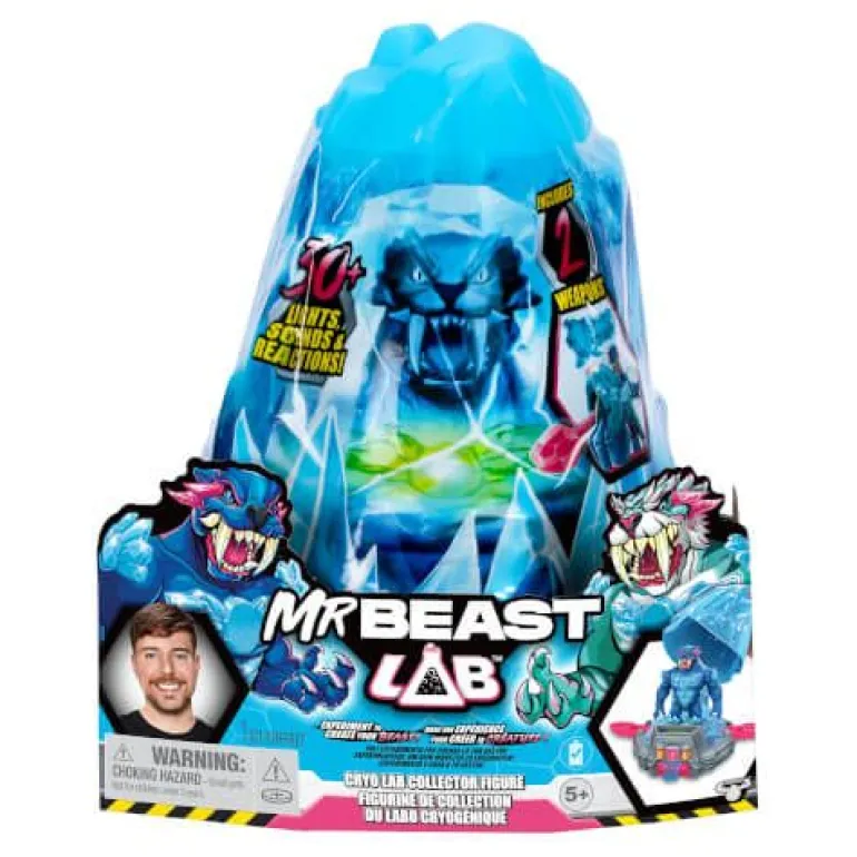 MrBeast Lab S2 Cryo Lab: Entdecke und aktiviere die eisgefangenen Bestien. Enthält Schlüssel für den Pandemonium-Kern, Fizz-Pulver für Feuerflüssigkeit, um die Figur zu enthüllen. Inhalt: 2 Projektile, 1 Schwert, 1 Waffe, Fizz-Pulver, 2 Anleitungen, 1 Figur (7 Zoll), Batterien, Playset. Mit über 30 Soundeffekten, Eisblock-Spielset, Projektilwerfer und 20+ Bewegungspunkten.