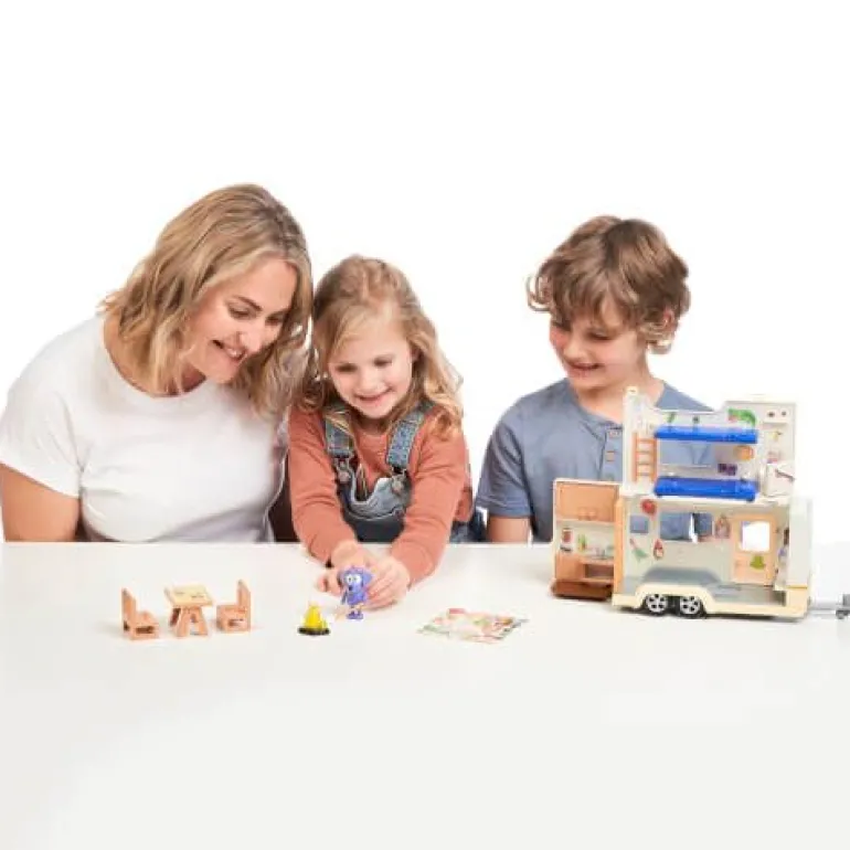 Mit Blueys Wohnwagen-Spielset holst du die fröhliche und fantasievolle Welt von Bluey und ihrer Familie zu dir nach Hause.