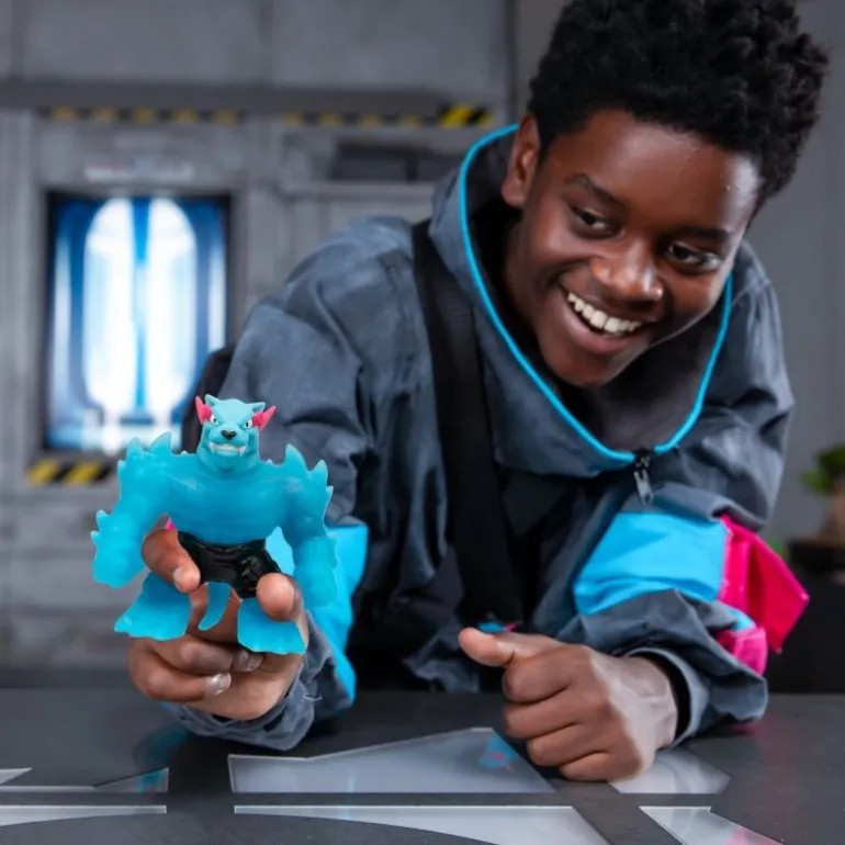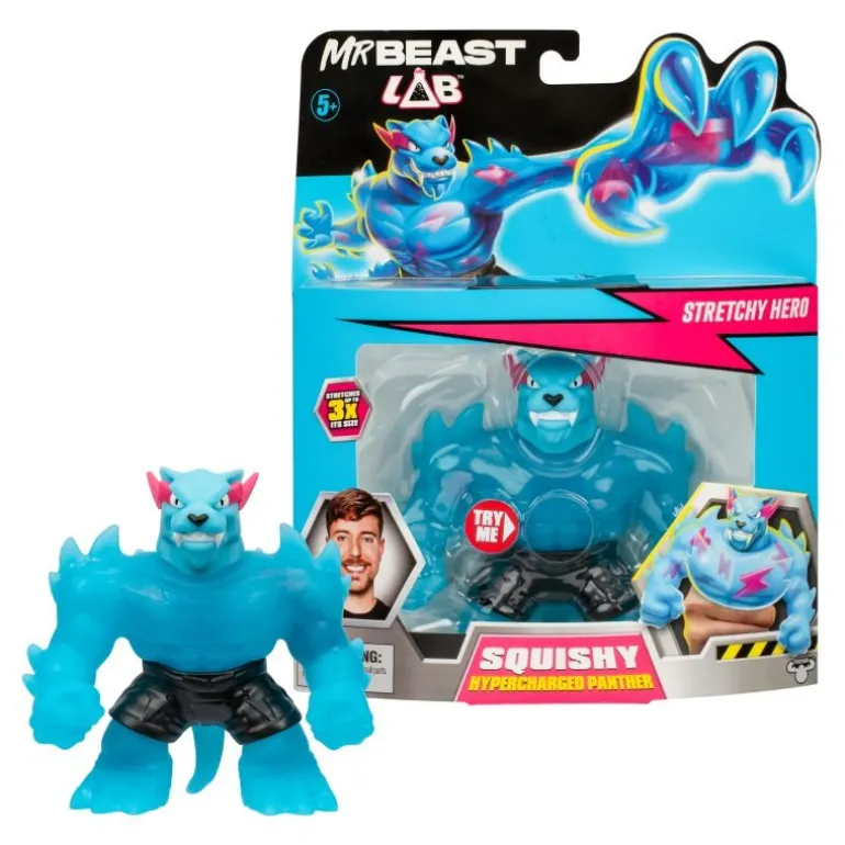 Das sind die NEUEN dehnbaren Helden von MrBeast Lab. Der charakteristische Panther von MrBeast hat sich in einen unvergleichlich biegsamen, dehnbaren Helden verwandelt. Jede 11 cm große Figur hat eine einzige Füllung, die nur darauf wartet, von dir erkundet zu werden. Du kannst die Helden von MrBeast Lab also nach Belieben dehnen und drücken, um ihre beeindruckenden Füllungen zu sehen. Welche Füllungen wirst du wohl entdecken? Aber das ist noch lange nicht alles. Die Helden von MrBeast Lab haben die unglaubliche Fähigkeit, sich bis zu 3x in ihrer Größe auszudehnen. Mach dich also bereit für die ALLMÄCHTIGE ATTACKE. Es gibt 3 einzigartige Stretchy Panther-Helden zu Sammeln – jeweils mit einer individuellen elastischen Füllung. Sammle den Iconic, Hypercharged und Legendary Panther und lasse das Abenteuer beginnen – mit den NEUEN dehnbaren Helden von MrBeast Lab der Heroes of Goo Jit zu.