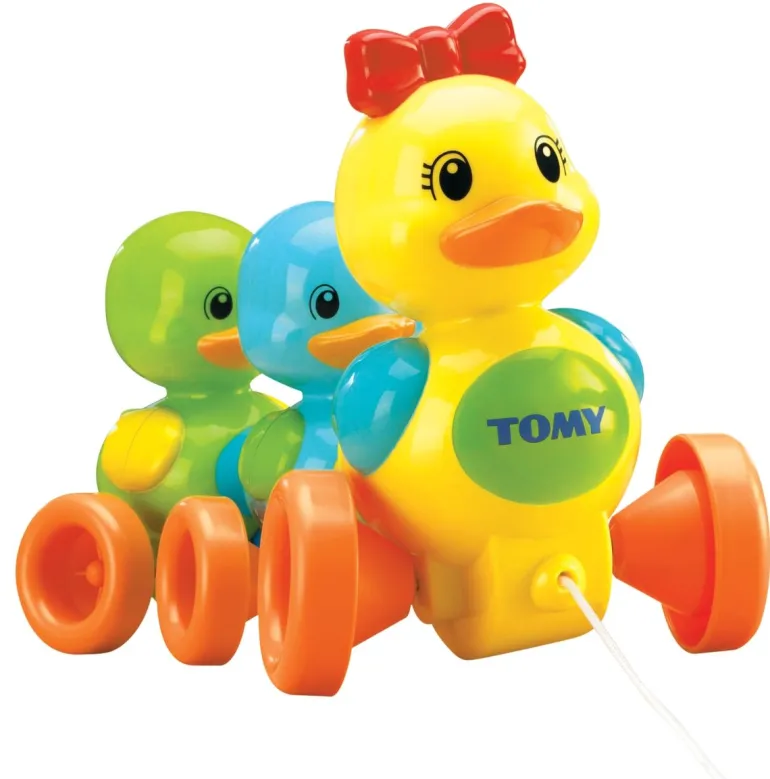 16 Jahre Entenfamilie…Der TOMY Klassiker neu aufgelegt. Fröhlich schnatternd watscheln die farbenprächtigen Entchen zu einer Melodie der Mutter hinterher!