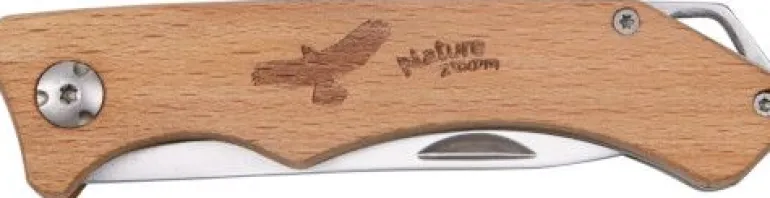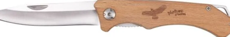 Dieses Klappmesser mit Holzgriff liegt gut in der Hand und hat eine hochwertige, rostfreie Klinge aus Edelstahl. Mit praktischer Tasche zum Verstauen.